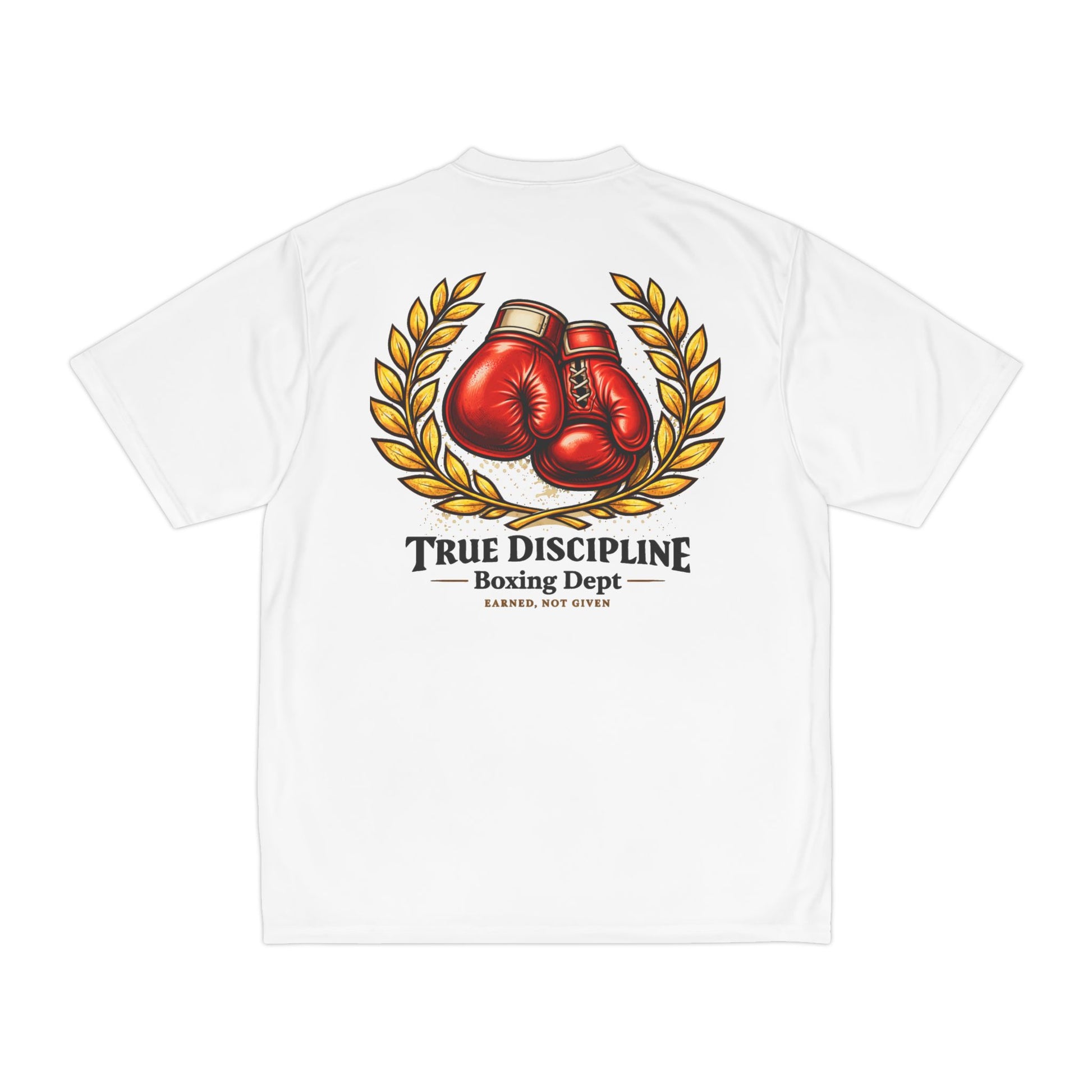 Built for those who understand that nothing worthwhile comes easy. The True Discipline Boxing Dept. T-Shirt represents grit, honour, and the quiet confidence earned through hard work. Featuring a bold back graphic of classic red boxing gloves framed by Roman-style olive branches, this design symbolises discipline, victory, and respect — values forged through effort, not entitlement.
